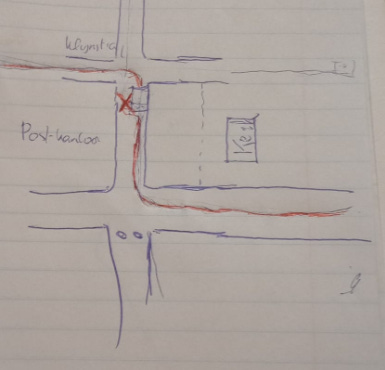 Paramedics arrived quickly and gave me first aid at the scene. In my family’s diary, I later found a sketch of that day: the red line showing the road I usually took to school, and the red X marking the exact spot where the car hit me.